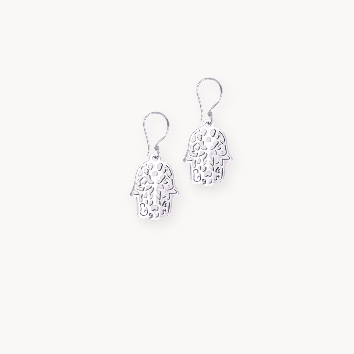 أقراط "حمسة المقدسة" المصنوعة يدويًا بأناقة من الفضة الإسترلينية، تمزج بين الرمزية الروحانية والفن الراقي. تصميمها المخرم يُبرز أنماطًا عربية رقيقة، ما يجعلها قطعةً خالدة.