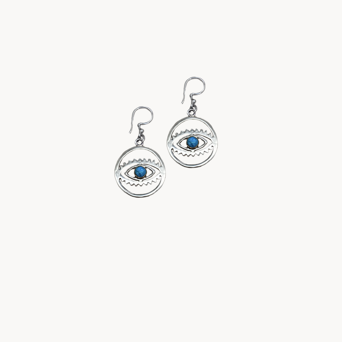 Unit price perEmbrace protection and elegance with the Mystic Eye Turquoise Earrings. Crafted from 925 sterling silver, these unique earrings feature the symbolic eye motif, believed to ward off negativity, accented with a vibrant turquoise stone for a touch of color and meaning.