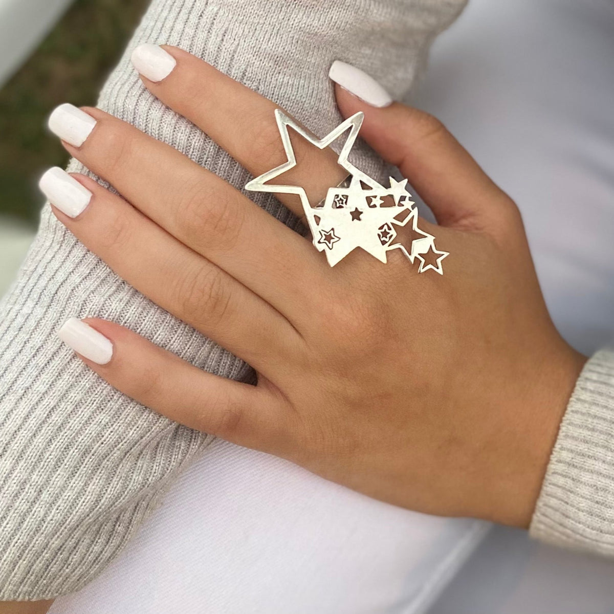 Unit price perMake a stellar impression with the Starburst Statement Ring, a bold and artistic accessory that brings celestial beauty to your style. Handcrafted from premium sterling silver, this stunning ring features a prominent open star silhouette paired with an intricate design that mimics a starburst effect. Perfect for those who love standout, contemporary designs.