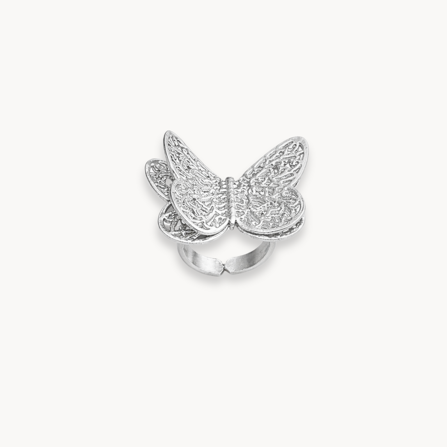 Unit price perA handcrafted sterling silver ring featuring detailed butterfly wings in a bold artistic band. Designed to symbolize connection and graceful everyday confidence.