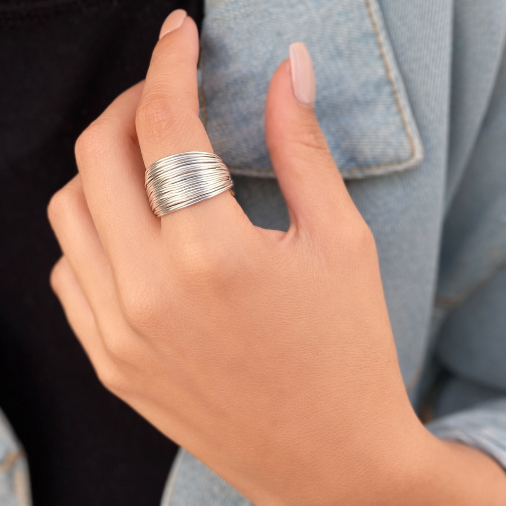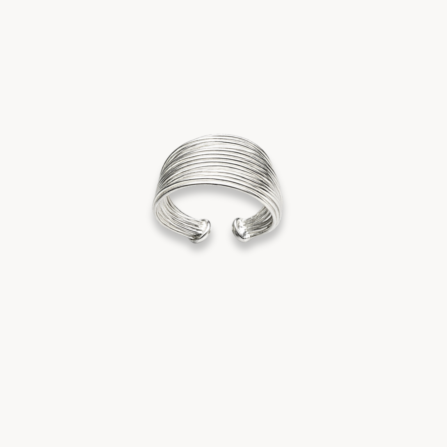 Unit price perA handcrafted sterling silver cuff ring composed of layered parallel threads with textured detailing and open adjustable ends for a comfortable, effortless fit.