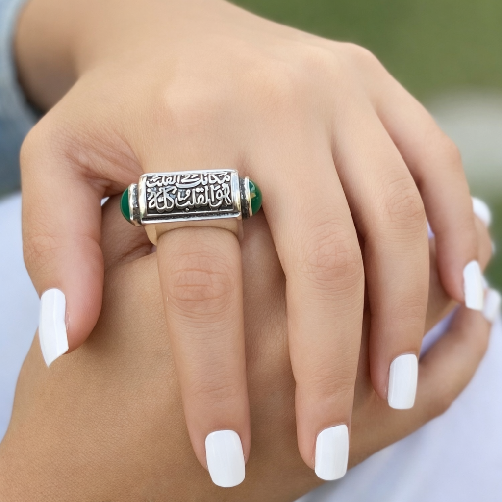 Unit price perA meaningful silver ring engraved with Arabic calligraphy that celebrates love, devotion, and holding someone as the whole heart.